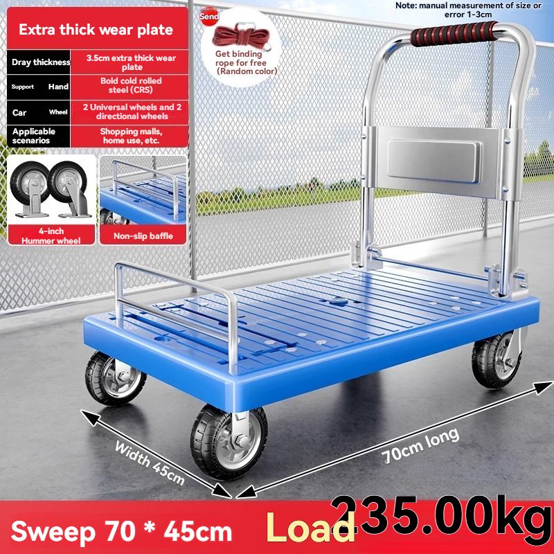 90*60CM Small Trolley Cargo Trailer Folding Lightweight Hand-held Trolley Transport Flatbed Home Delivery Trolley