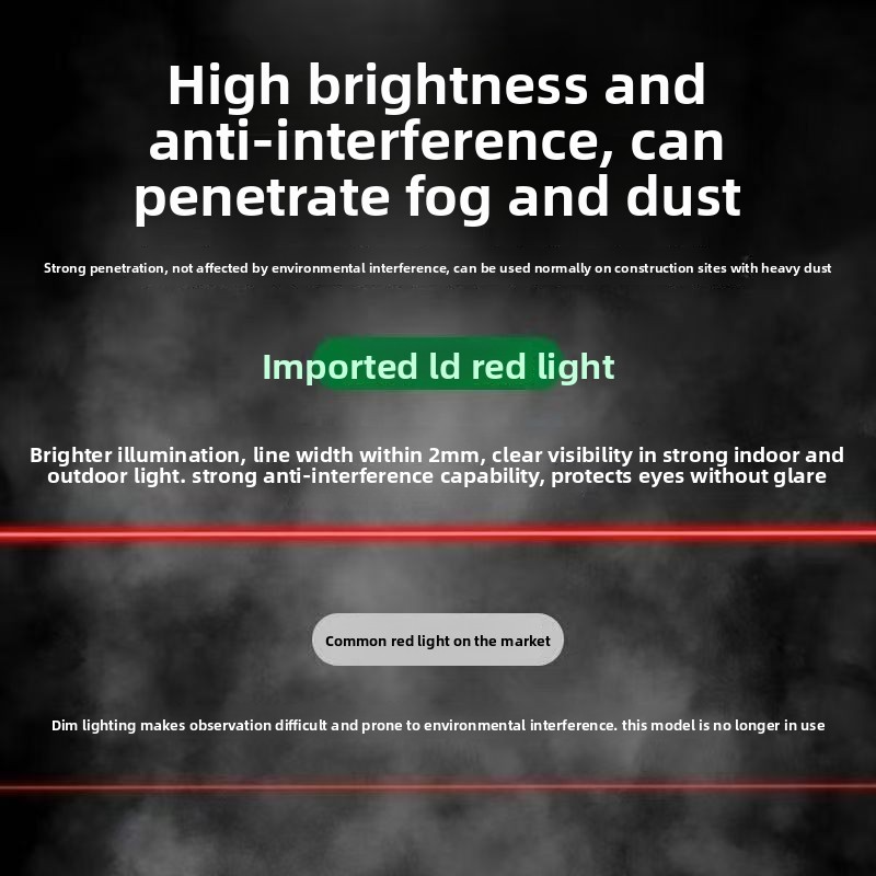 Equipped with a bright red laser line that remains visible under most indoor lighting conditions, helping ensure clear reference lines during work.