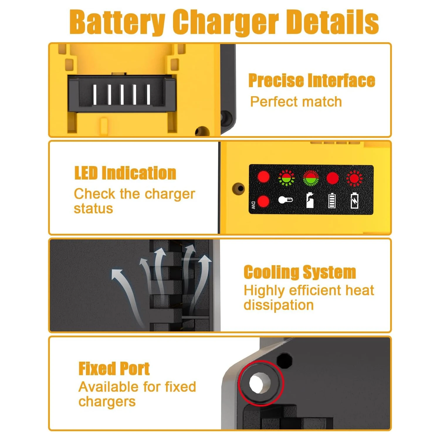 【Lightweight and Portable】Replacement for dewalt battery charger is smaller in size and lighter in weight, making it easy to carry and store, ideal for use in homes or construction sites. It is made of high-quality materials to ensure durability