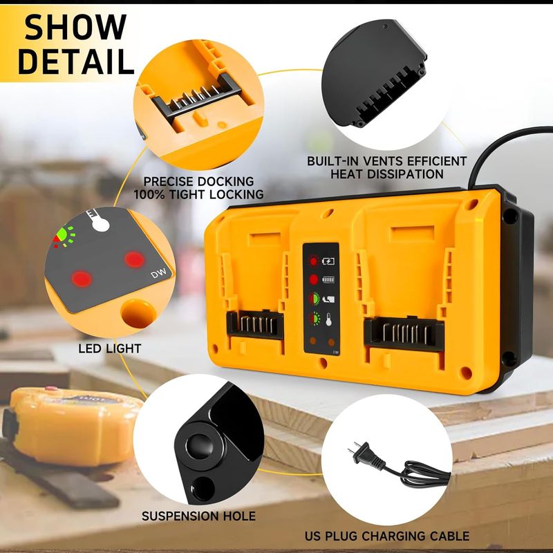 【Lightweight and Portable】Replacement for dewalt battery charger is smaller in size and lighter in weight, making it easy to carry and store, ideal for use in homes or construction sites. It is made of high-quality materials to ensure durability