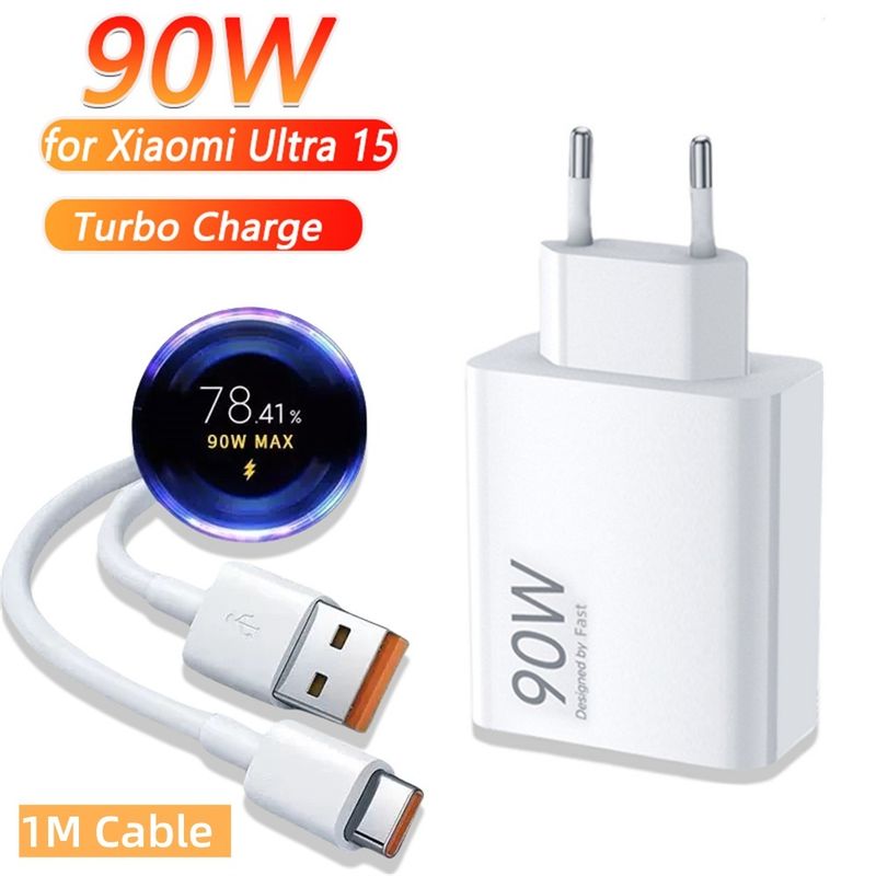 90W Turbo Charger EU US Plug Wall Adapter 6A Type C Cable for Xiaomi 15 Ultra Series Redmi Note Poco Fast Charging USB Charger