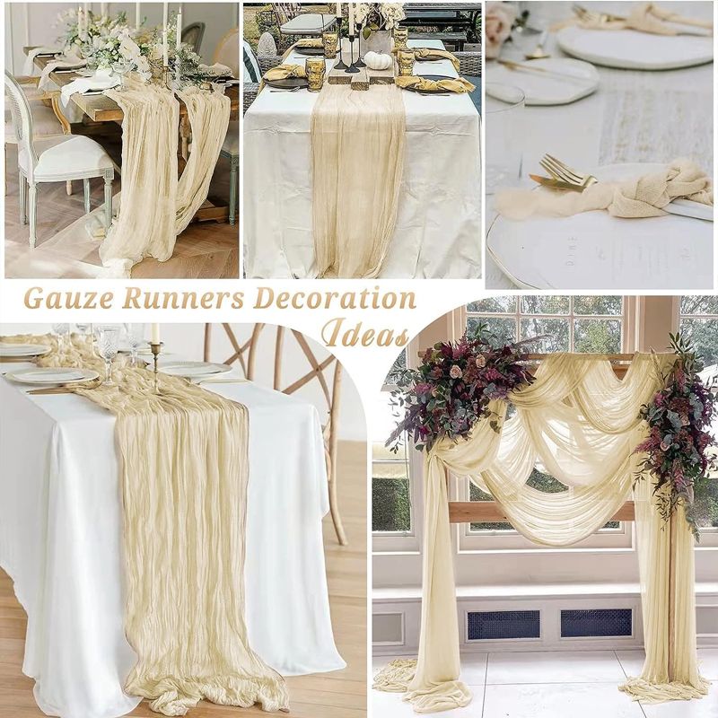 90x400cm Semi-Sheer Gauze Table Runner Table Dining Vintage Wedding Bridal Christmas Banquets Party Arches Cake decoration