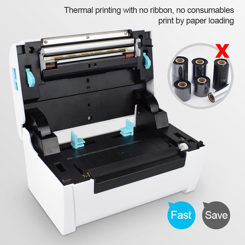 The printer use 110mm thermal label paper, and adopt to easy paper loading. So the paper is very convenient install. And also support printing of various paper specifications.