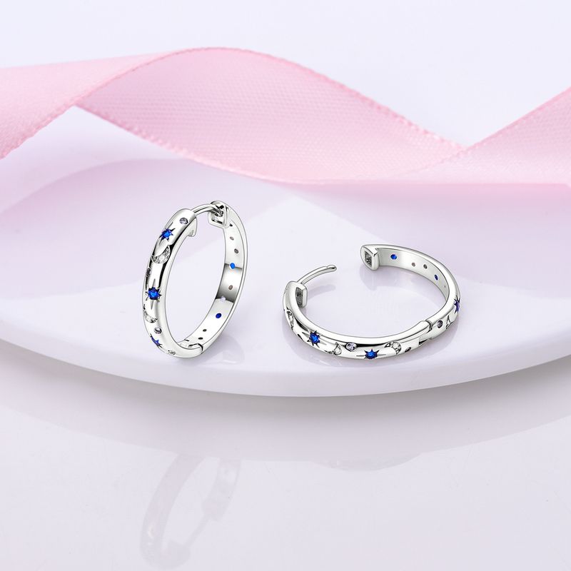925 Silver Hoop Earrings For Woman Pendientes Zircon Heart Shape Star Eardrop Original Earring Fashion Jewelry