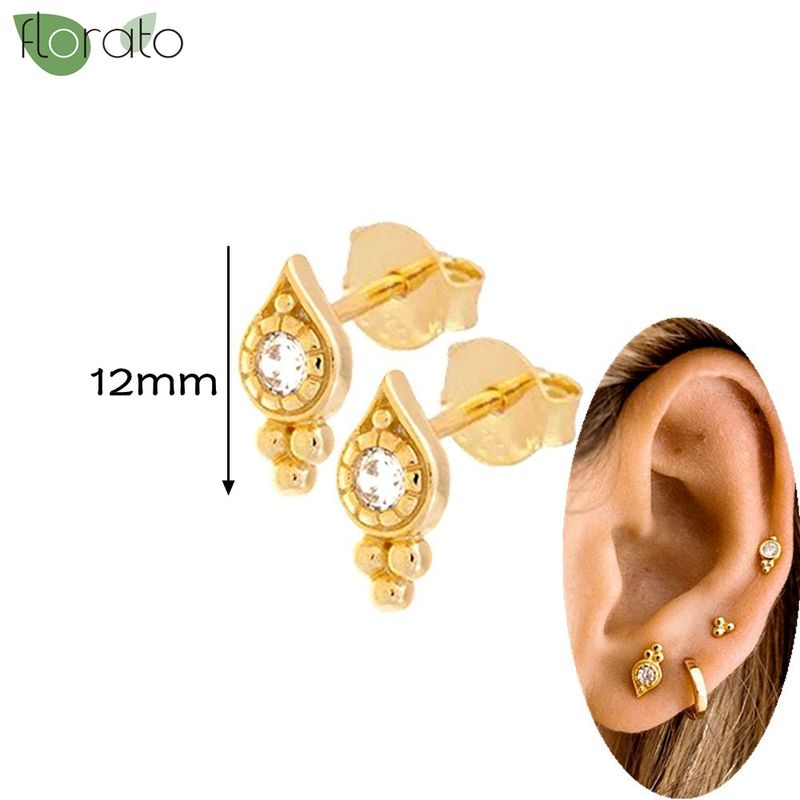 925 Silver Needle Fashion Heart Gold Color Stud Earrings for Women Exquisite Zircon Small Earrings Luxury Ear Piercing Jewelry