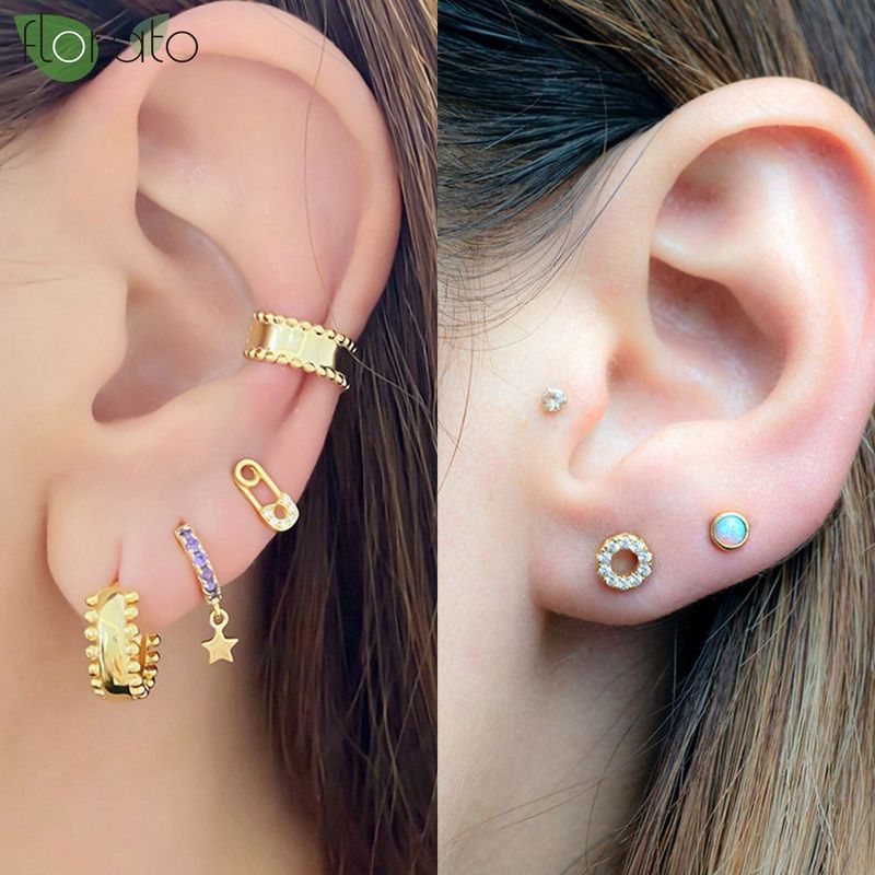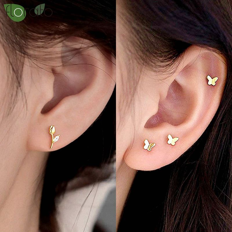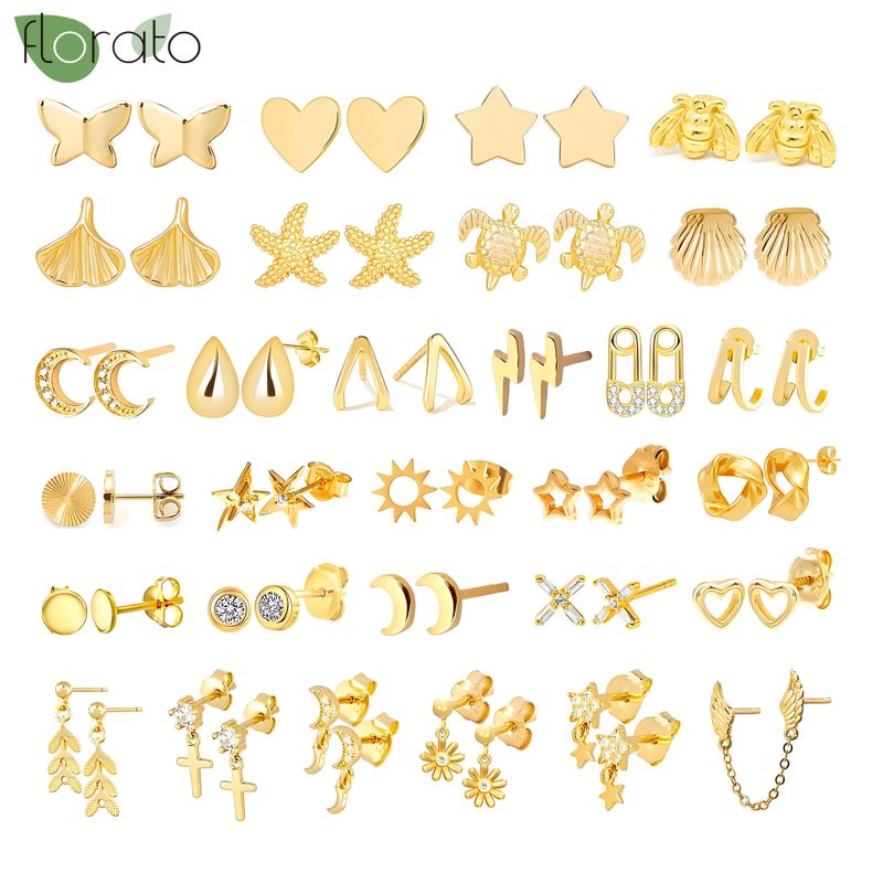 925 Silver Needle Fashion Heart Gold Color Stud Earrings for Women Exquisite Zircon Small Earrings Luxury Ear Piercing Jewelry
