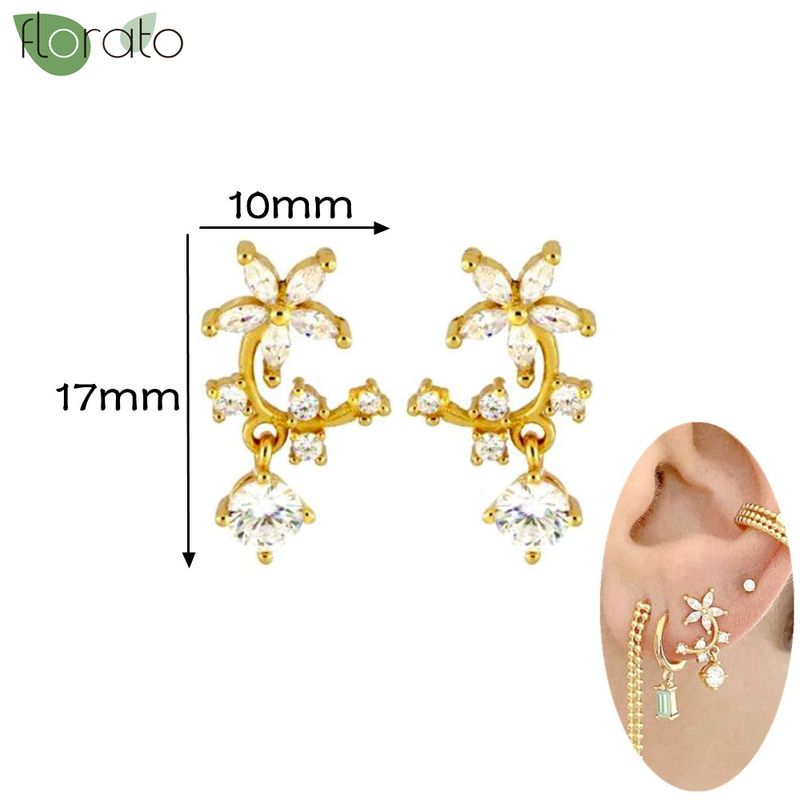 925 Silver Needle Fashion Heart Gold Color Stud Earrings for Women Exquisite Zircon Small Earrings Luxury Ear Piercing Jewelry