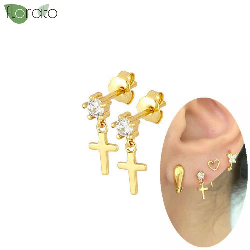 925 Silver Needle Fashion Heart Gold Color Stud Earrings for Women Exquisite Zircon Small Earrings Luxury Ear Piercing Jewelry