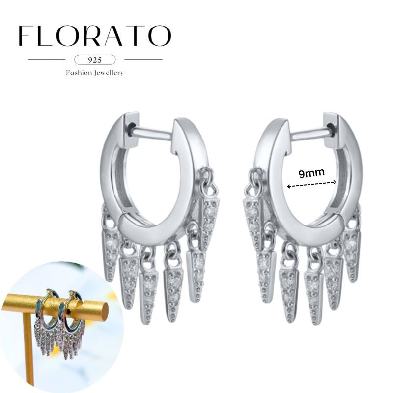 925 Silver Needle Rivet Micropaved Zircon Pendant Hoop Earrings For Women Punk Vintage Earrings Fashion Party Jewelry Gifts