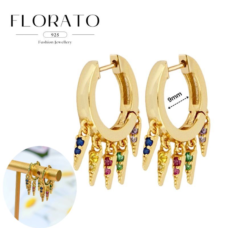 925 Silver Needle Rivet Micropaved Zircon Pendant Hoop Earrings For Women Punk Vintage Earrings Fashion Party Jewelry Gifts