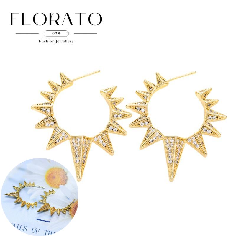925 Silver Needle Rivet Micropaved Zircon Pendant Hoop Earrings For Women Punk Vintage Earrings Fashion Party Jewelry Gifts