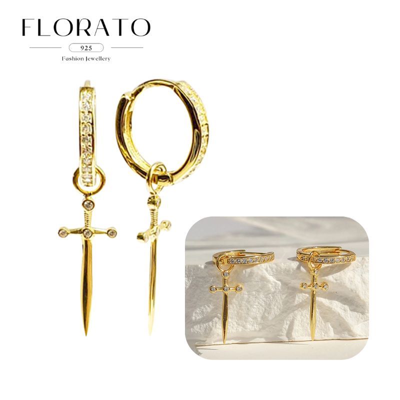 925 Silver Needle Rivet Micropaved Zircon Pendant Hoop Earrings For Women Punk Vintage Earrings Fashion Party Jewelry Gifts