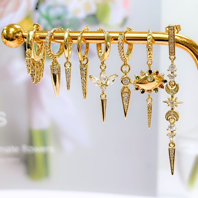 925 Silver Needle Rivet Micropaved Zircon Pendant Hoop Earrings For Women Punk Vintage Earrings Fashion Party Jewelry Gifts