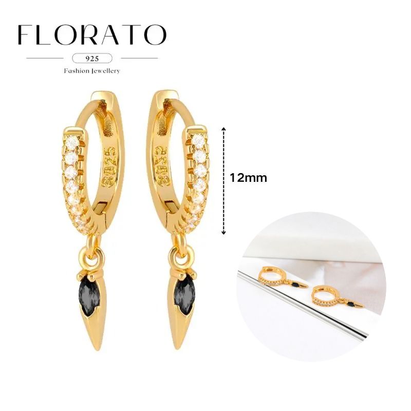 925 Silver Needle Rivet Micropaved Zircon Pendant Hoop Earrings For Women Punk Vintage Earrings Fashion Party Jewelry Gifts