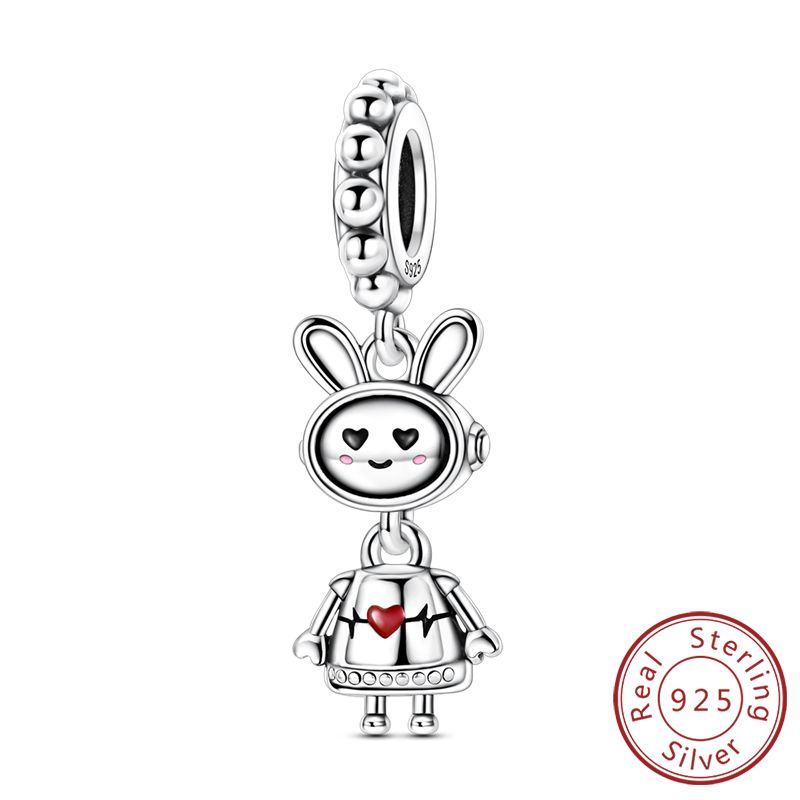 925 Sterling Silve Charms Beads Rabbit Robot Love Puppy Dog Charm Fit Original Bracelet Bangle Pendant Dangle Women Jewelry Gift