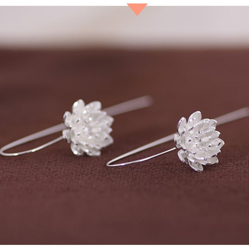 925 sterling silver Long Flower Earrings For Women Elegant Lady Prevent Allergy New Design Fashion Jewelry