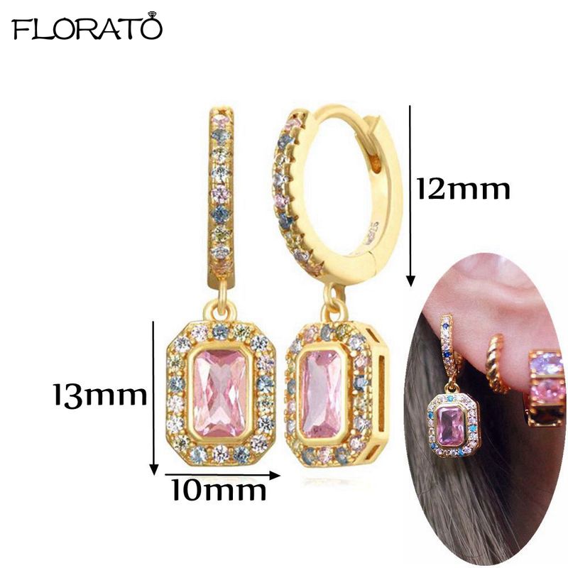 925 Sterling Silver Needle Cute Pink Heart Earrings 24K Gold Hoop Earrings for Women Fashion Puncture Jewelry Ear Accessories
