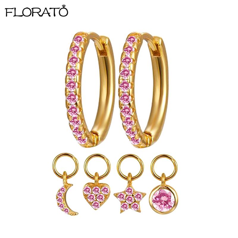 925 Sterling Silver Needle Cute Pink Heart Earrings 24K Gold Hoop Earrings for Women Fashion Puncture Jewelry Ear Accessories