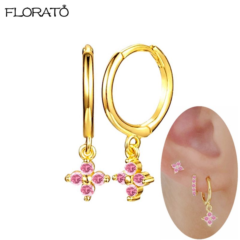 925 Sterling Silver Needle Cute Pink Heart Earrings 24K Gold Hoop Earrings for Women Fashion Puncture Jewelry Ear Accessories
