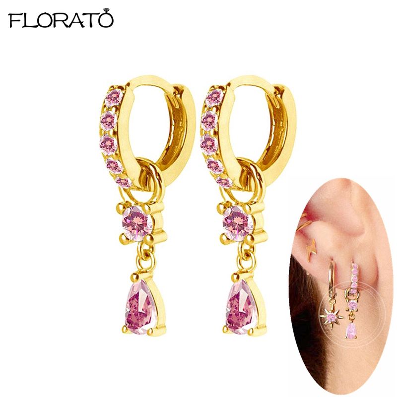 925 Sterling Silver Needle Cute Pink Heart Earrings 24K Gold Hoop Earrings for Women Fashion Puncture Jewelry Ear Accessories