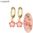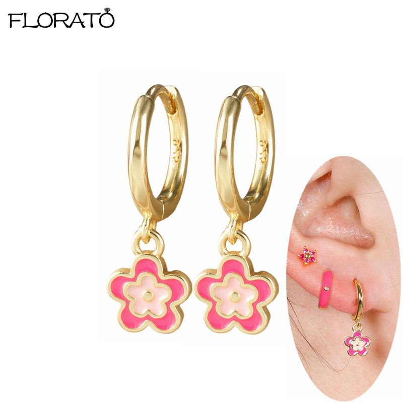 925 Sterling Silver Needle Cute Pink Heart Earrings 24K Gold Hoop Earrings for Women Fashion Puncture Jewelry Ear Accessories