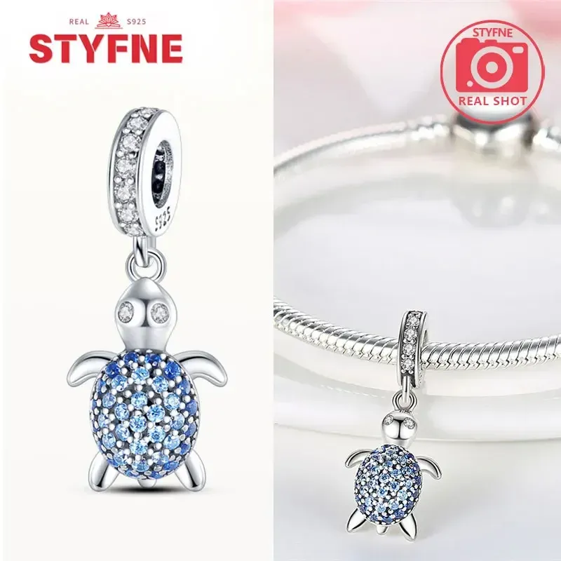 925 Sterling Silver Ocean Series Blue Turtle Starfish Shell Fit Original Bracelet Charms for Women diy Fine Jewelry Gifts