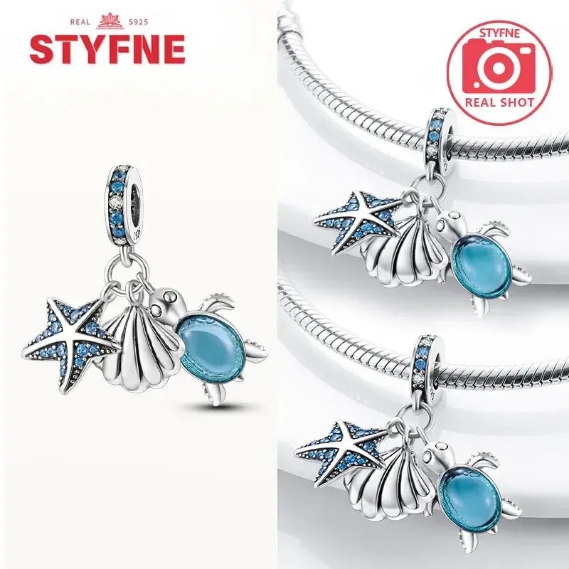 925 Sterling Silver Ocean Series Blue Turtle Starfish Shell Fit Original Bracelet Charms for Women diy Fine Jewelry Gifts