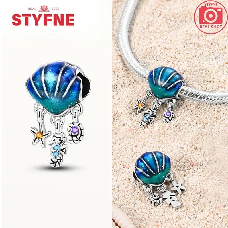 925 Sterling Silver Ocean Series Blue Turtle Starfish Shell Fit Original Bracelet Charms for Women diy Fine Jewelry Gifts