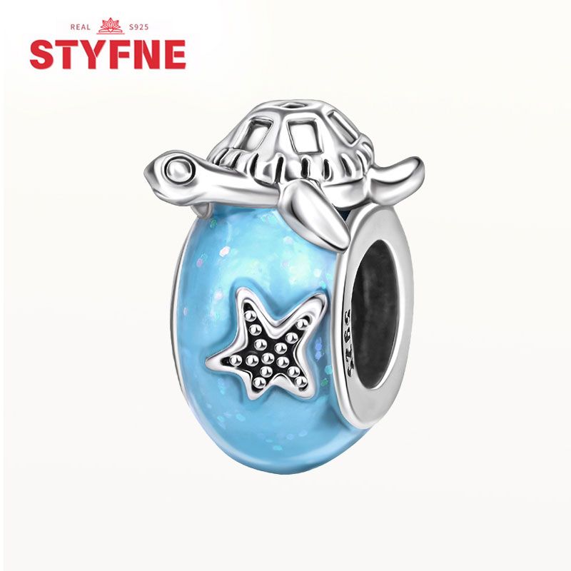 925 Sterling Silver Ocean Series Blue Turtle Starfish Shell Fit Original Bracelet Charms for Women diy Fine Jewelry Gifts