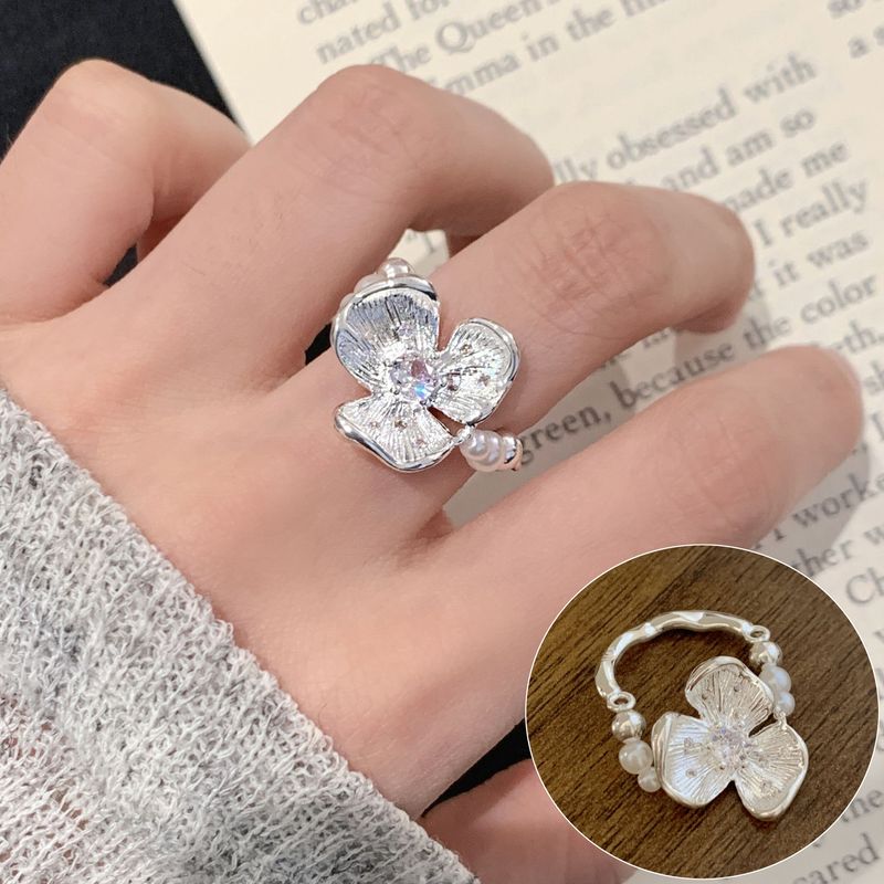 925 Sterling Silver Open Finger Ring Gold Color Elegant Flower Bud Asymmetric Sweet For Women Jewelry Gift Dropship Wholesale