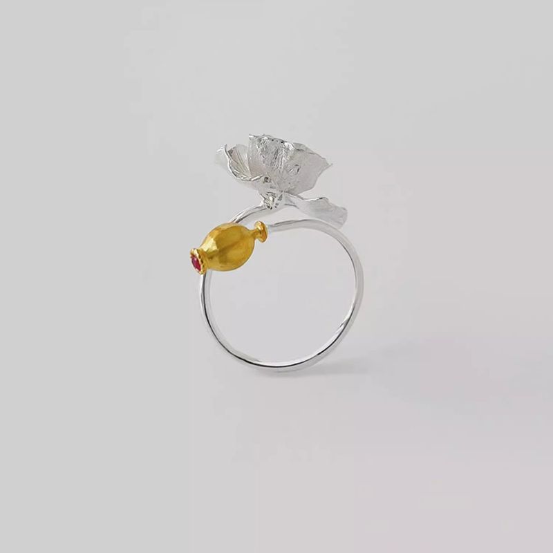 925 Sterling Silver Open Finger Ring Gold Color Elegant Flower Bud Asymmetric Sweet For Women Jewelry Gift Dropship Wholesale