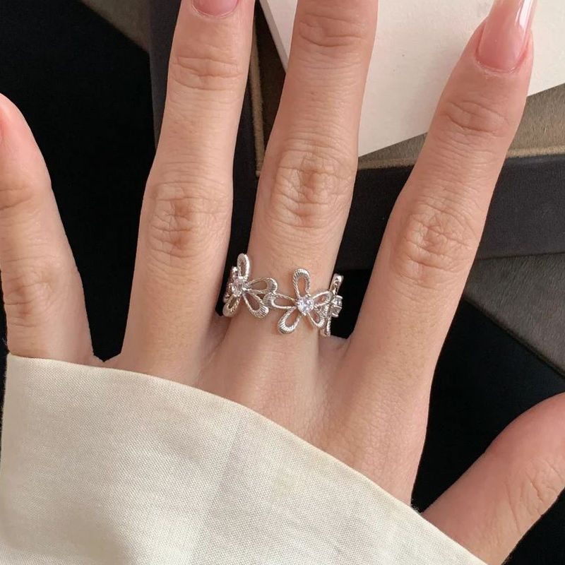 925 Sterling Silver Open Finger Ring Gold Color Elegant Flower Bud Asymmetric Sweet For Women Jewelry Gift Dropship Wholesale