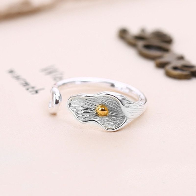 925 Sterling Silver Open Finger Ring Gold Color Elegant Flower Bud Asymmetric Sweet For Women Jewelry Gift Dropship Wholesale
