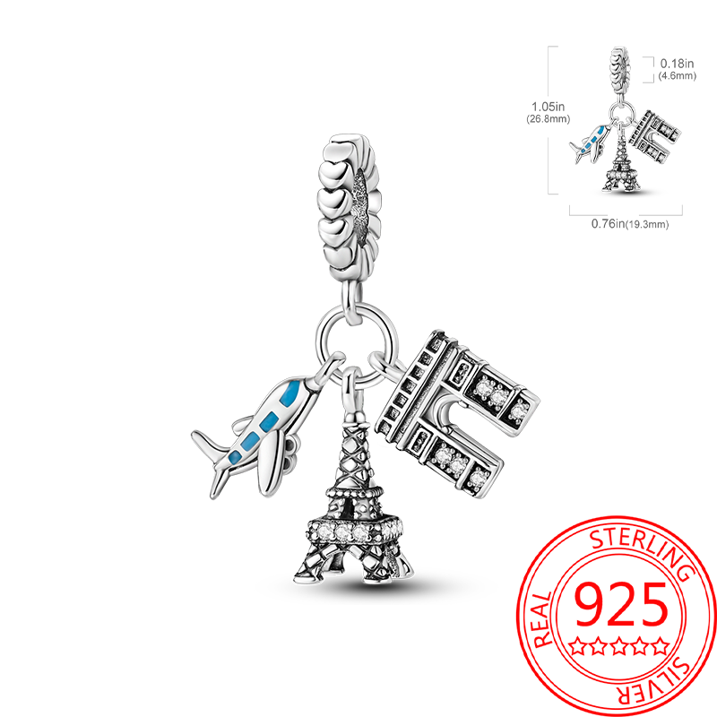925 Sterling Silver Paris Tower Aircraft Travel Charm Pendant Beads Fit Charm Original Bracelet for Women Jewelry Making