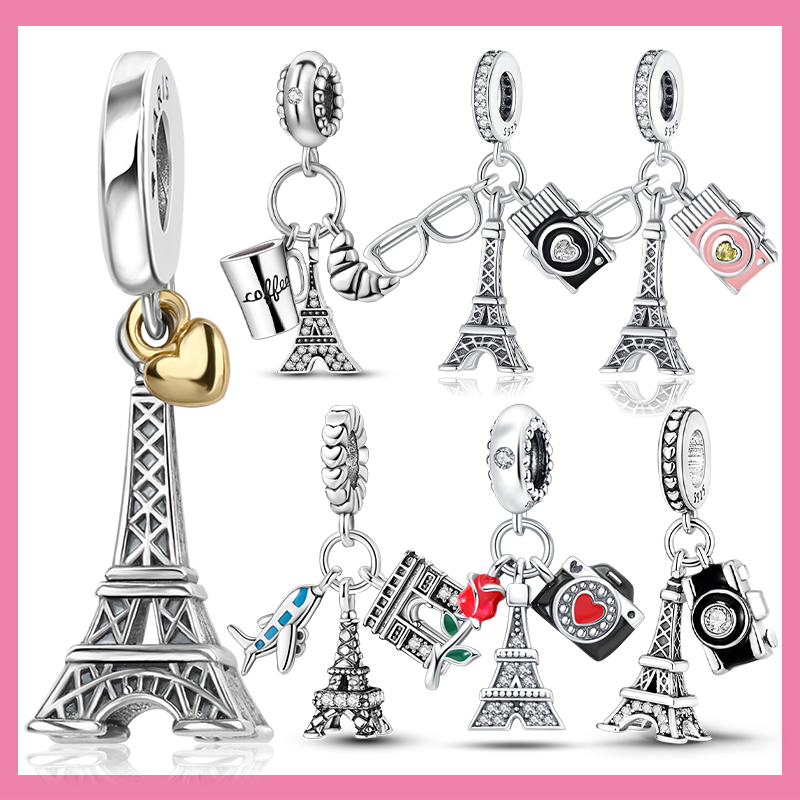 925 Sterling Silver Paris Tower Aircraft Travel Charm Pendant Beads Fit Charm Original Bracelet for Women Jewelry Making