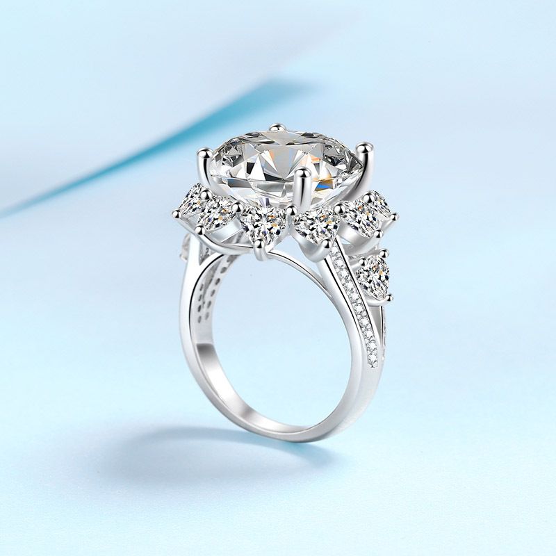 925 Sterling Silver Ring 10 Carats Moissanite Luxury Plated Pt950 14mm Zircon No20