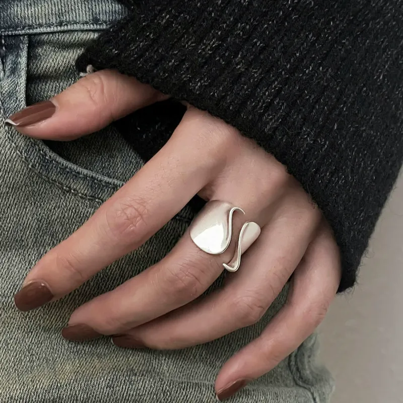 925 Sterling Silver Rings for Women Couple Minimalist Handmade Simple Big Open Ring Party Prevent Allergy Jewelry Holiday Gifts
