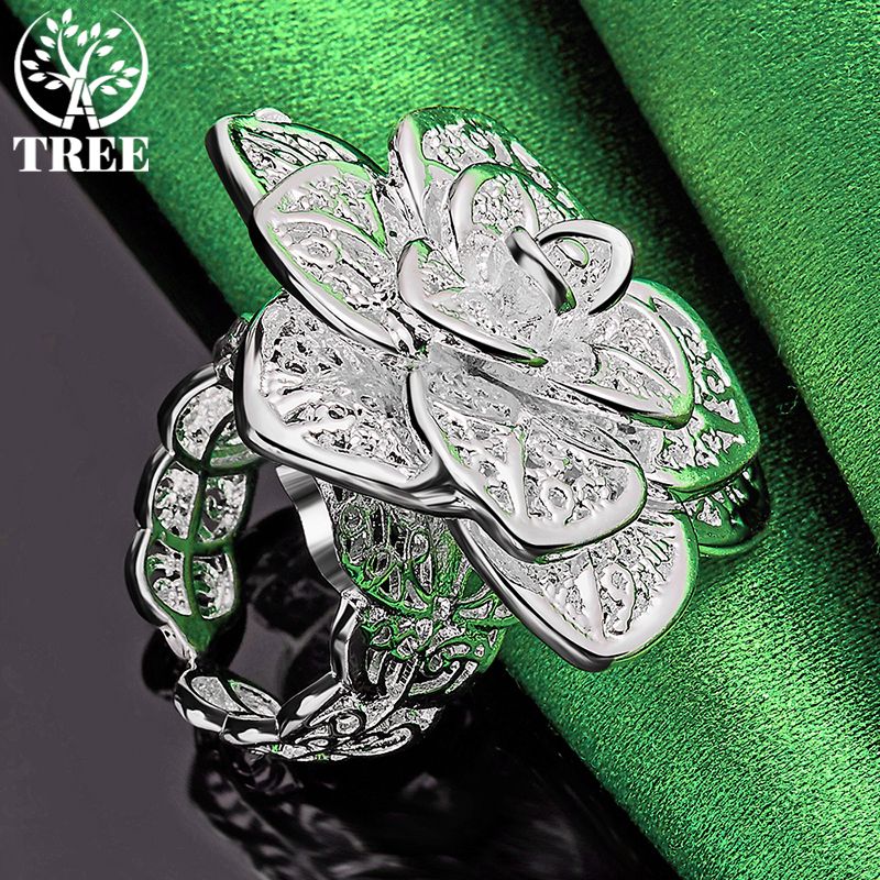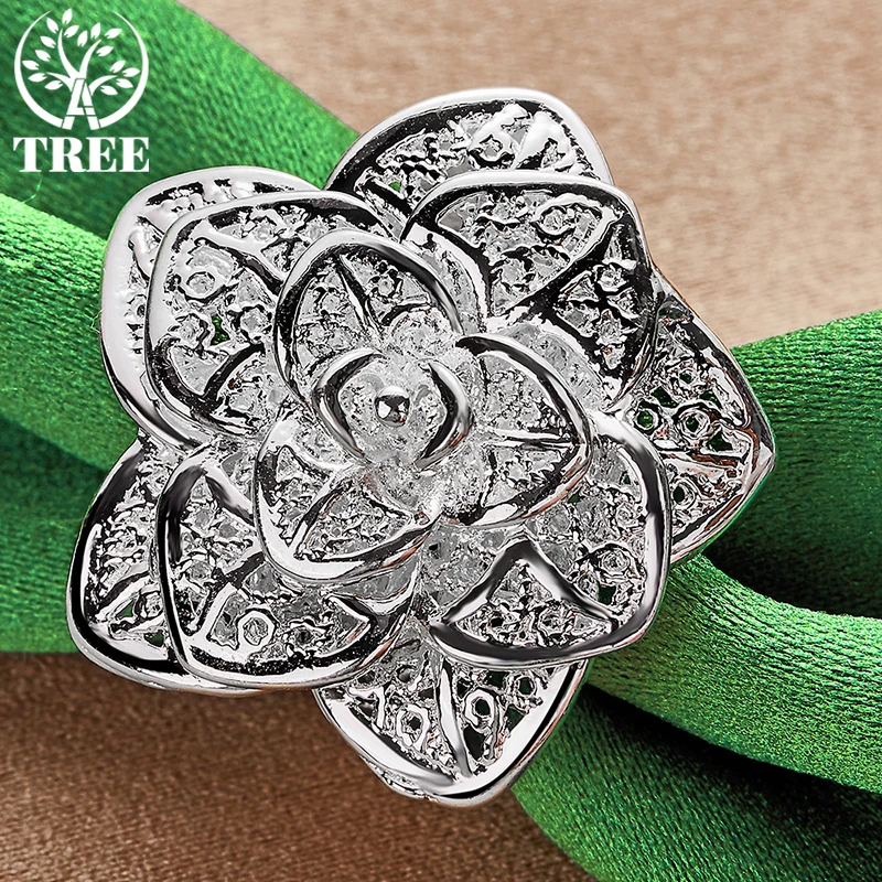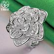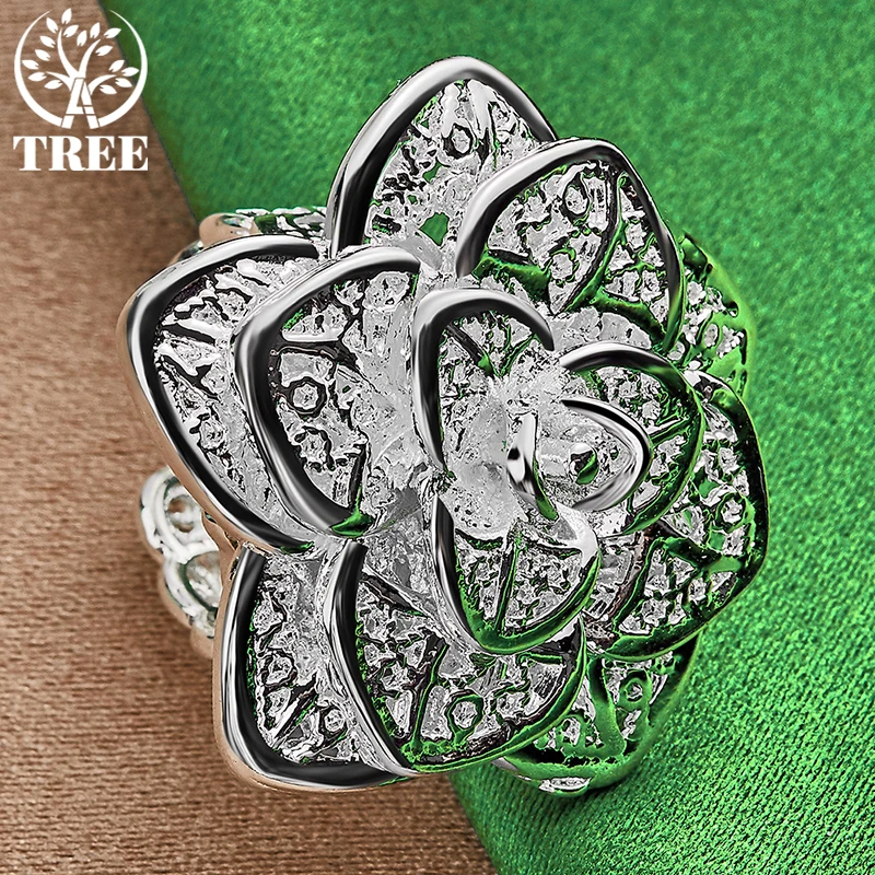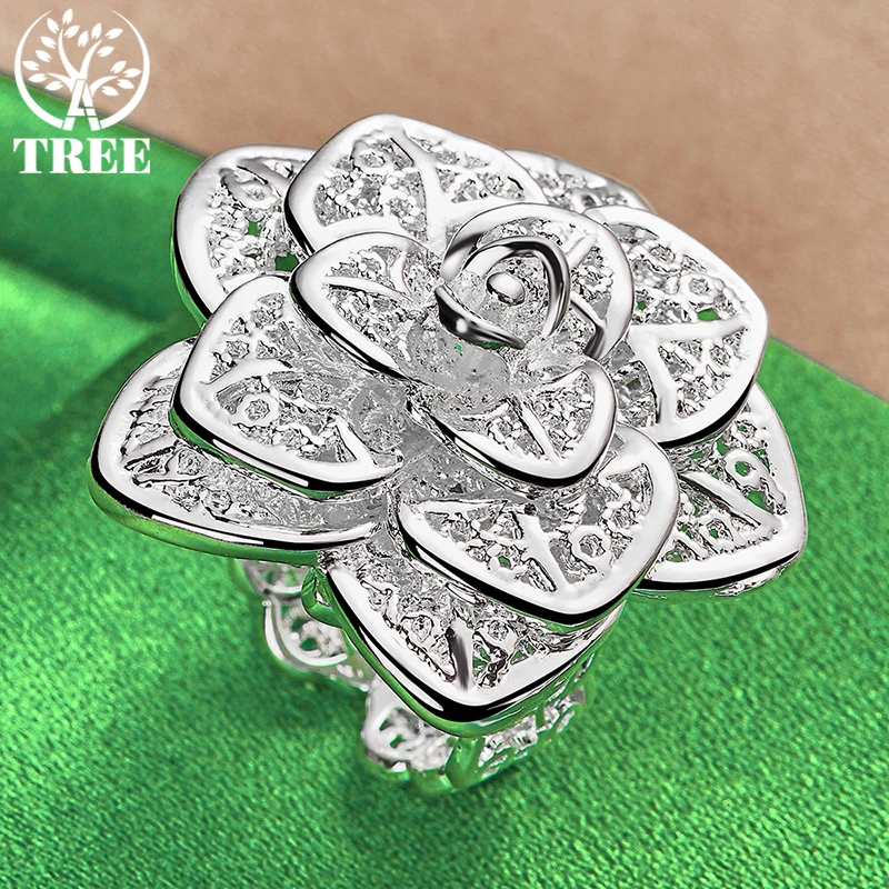 925 Sterling Silver Rose Flower Adjustable Opening Rings For Women Party Birthday Engagement Wedding Fashion Charm Jewelry Gift