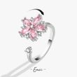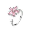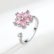 925 Sterling Silver Simple Crystal Pink Flower Finger Rings For Women Decompress Antidepressant Spin Ring Money 925