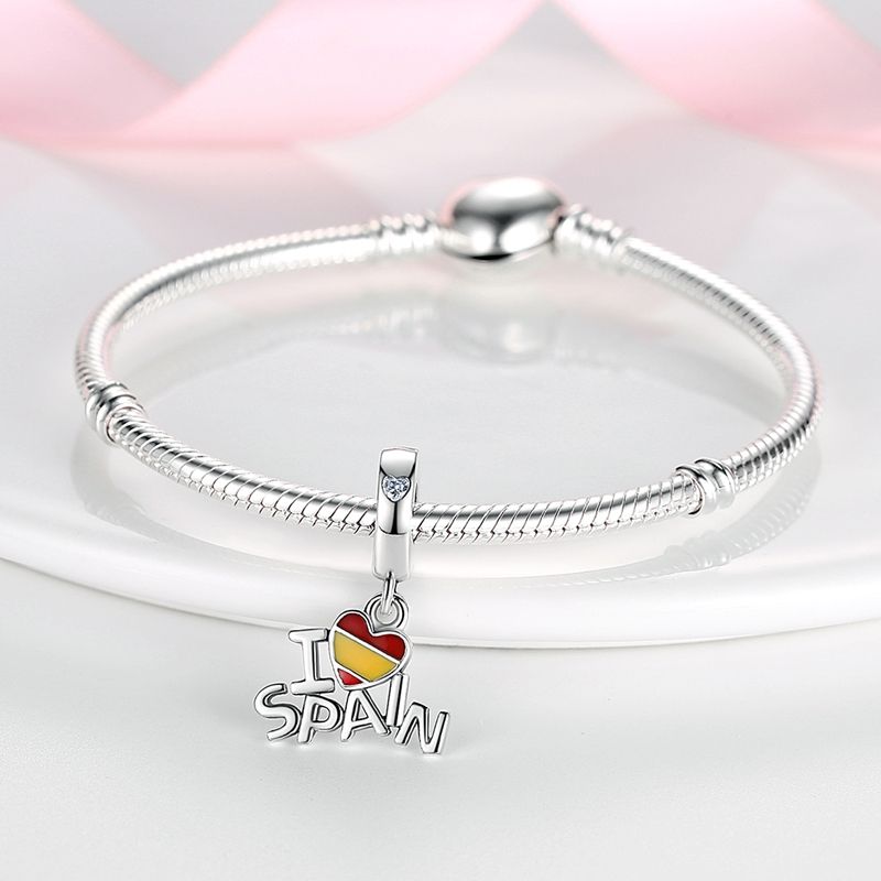 925 Sterling Silver Spain Brazil United States Chile Country Name Charms Fit Original Bracelet Beads For Women Jewelry