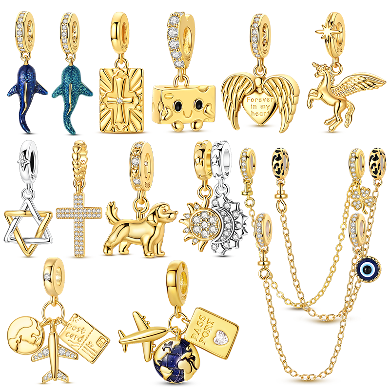 925 Sterling Silver Whale Shark Cross Airplane Unicorn Pendant Dangle Jewelry Fit Original 925 Bracelet For Women DIY Gift Party