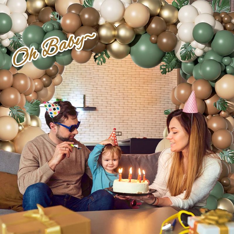 92pcs Sage Green Brown Balloon Garland Kit, Jungle Safari Woodland Balloon Arch Kit for Two Wild One Birthday Party Decor