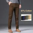 97% Cotton Men's Casual Pants Autumn Fashion Comfortable Elastic Slim Straight Business Trousers Black ArmyGreen Khaki
