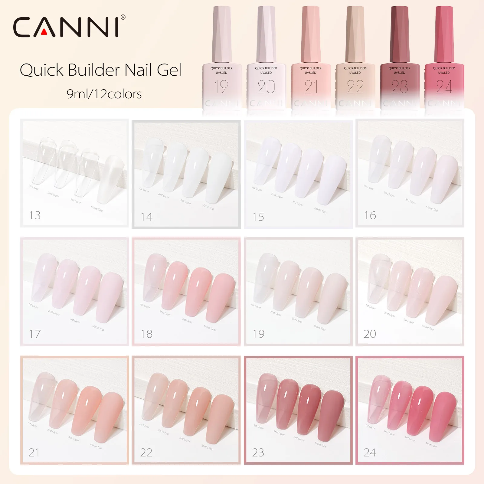9ml CANNI Nail Gel Polish HEMA FREE TPO FREE French Nail Design Rubber Base Gel Builder Nail Gel In Bottle Semi Permanent Gel