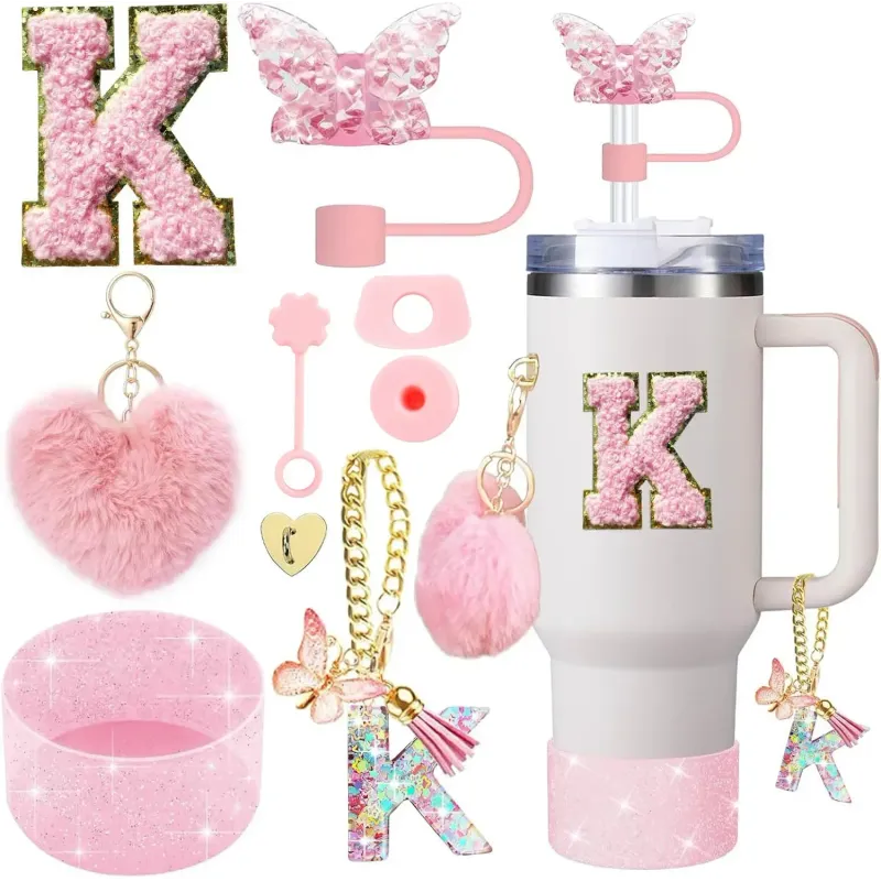 9PCS Accessory Set for Stanley Cup 30oz 40oz Butterfly Straw Cover Cap Silicone Boot Charm Initials Sticker Spill Proof Stopper