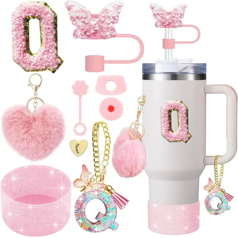 9PCS Accessory Set for Stanley Cup 30oz 40oz Butterfly Straw Cover Cap Silicone Boot Charm Initials Sticker Spill Proof Stopper