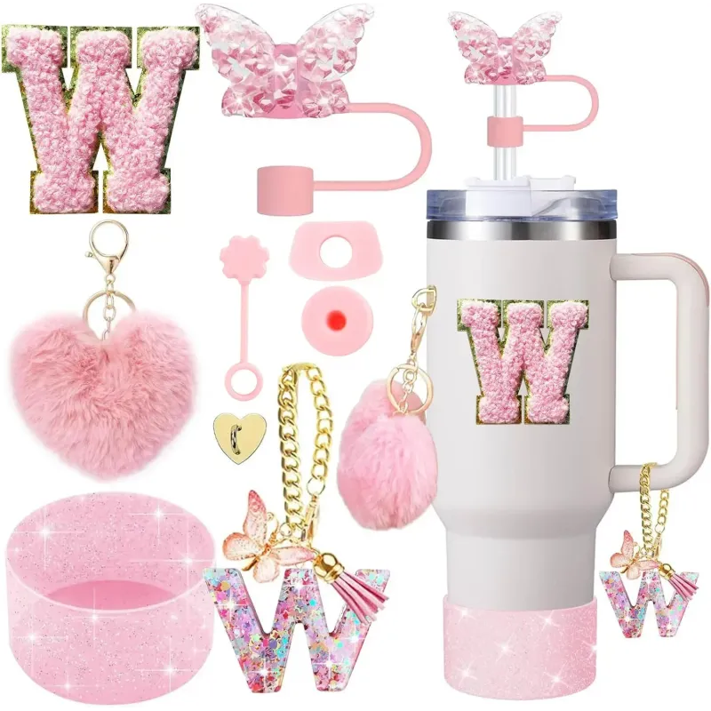 9PCS Accessory Set for Stanley Cup 30oz 40oz Butterfly Straw Cover Cap Silicone Boot Charm Initials Sticker Spill Proof Stopper