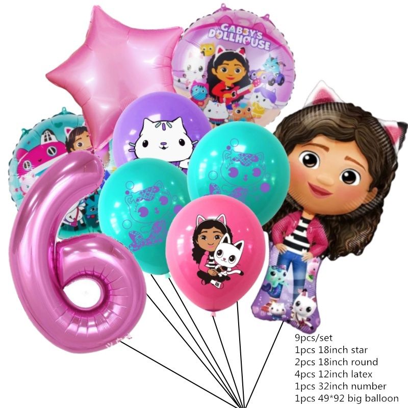 9pcs Gabby Dollhouse Pink Number Balloon 1 2 3 4 5 st Girl Birthday Party Decoration Baby Shower Supplies Kids Toy Globos