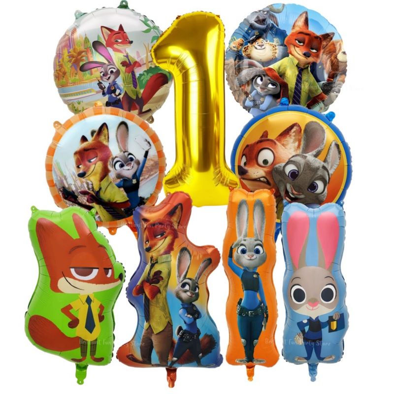 9Pcs Zootopia Foil Balloon Set Cartoon Judy Nick Theme Number Balloons for Children's Birthday Party Baby Shower Decorations