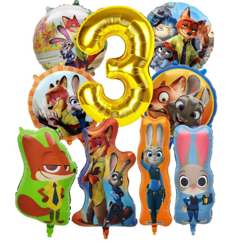 9Pcs Zootopia Foil Balloon Set Cartoon Judy Nick Theme Number Balloons for Children's Birthday Party Baby Shower Decorations